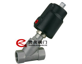 氣動螺紋角座閥是氣動單元組合儀表中的執行單元。內螺紋氣動角座閥具有結構結構緊湊,重量輕,體積小,動作靈敏。角座閥主要由指示器、氣控頭、復位彈簧、填料盒內部零件、閥體、螺帽、密封盤片盤片、閥體、先導口、空氣入口組成。螺紋氣動角座閥廣泛應用于短時間頻繁啟動,動作準確的特點,配合電磁閥使用,用氣動控制可準確控制氣體、液體流量。可實現準確控溫、滴加液體等要求。